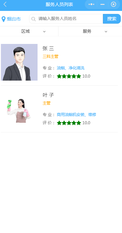 點擊服務人員,即可選擇服務地區,服務人員,服務類型的所有信息。