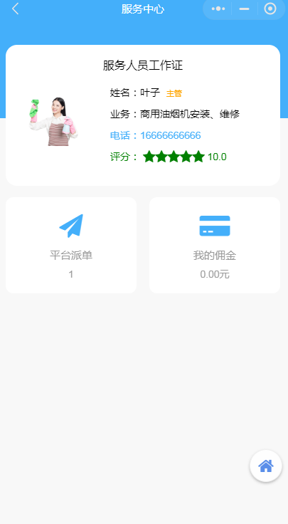 服務中心審核通過后可以查看自己的評分,派單和余額情況等信息。