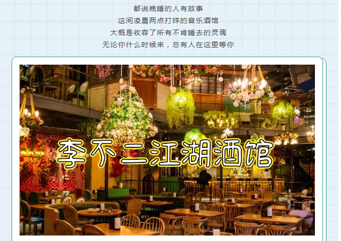 摘要:李不二江湖酒館,鬧市中心的音樂酒吧時尚與經典并存,杯杯都是招牌沒有妹子能躲得過它,江湖菜熱辣來襲,嗨到停不下來,煙臺吃貨粉絲福利,...